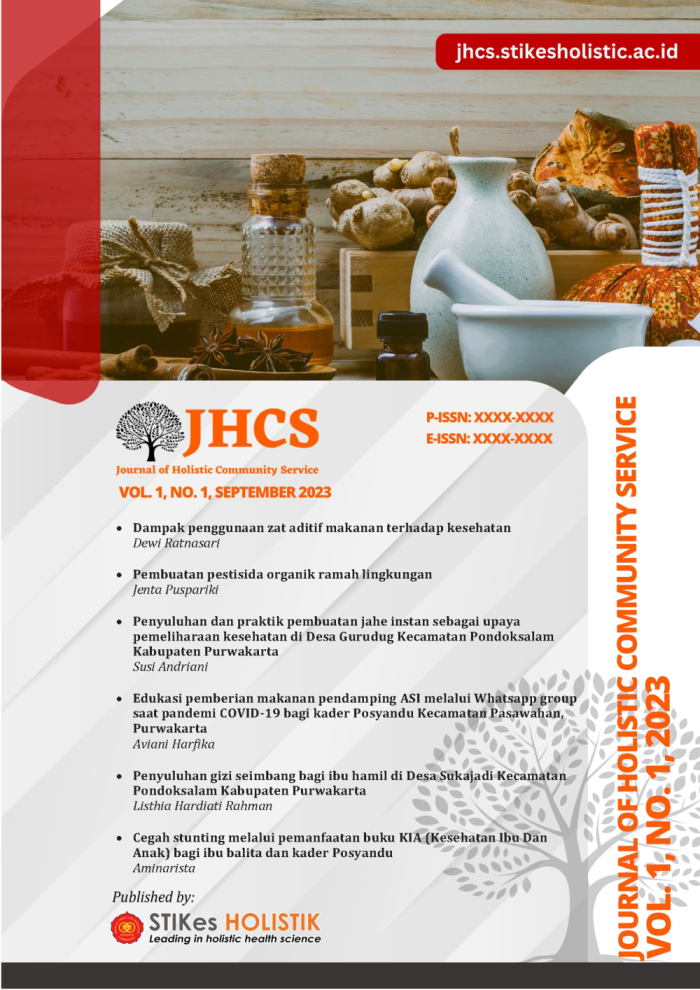 Journal of Holistic Community Service (JHCS) berisi kumpulan artikel hasil pengabdian kepada masyarakat dibidang kesehatan holistik dan kesehatan konvensional.